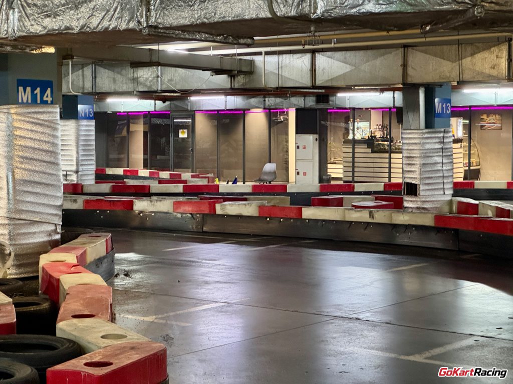 Трасса картинга находится на минус втором этаже паркинга торгового центра Капитолий. Как и на многих подземных площадках здесь есть столбы и они заметно влияют на конфигурацию не в лучшую сторону. По длине трасса вполне достойная, круг на взрослом прокатном карте занимает около 32–33 секунд. При этом ширина минимальная, в некоторых местах чуть шире самого карта, поэтому обгонять почти негде. Покрытие бетонное, скольжения много, по мере прогрева шин появляется держак, но для картинга такое покрытие далеко не идеальный вариант. Конфигурация в целом понравилась. Отбойники на трассе черные от пыли и явно просят мойку.
