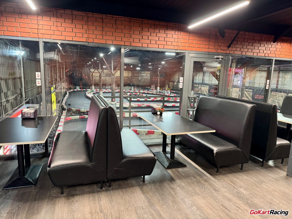 Здесь есть кафе, и на этом, по сути, все. Очевидно, что максимум пространства отдали под трассу, поэтому на остальное его просто не хватило. При этом у кафе есть большой плюс, из него открывается отличный обзор практически на всю трассу, что для крытых картингов большая редкость. В Москве похожее решение, пожалуй, можно встретить только на новой трассе Le Mans на Дежнёва.